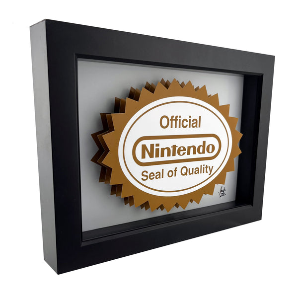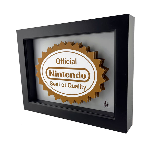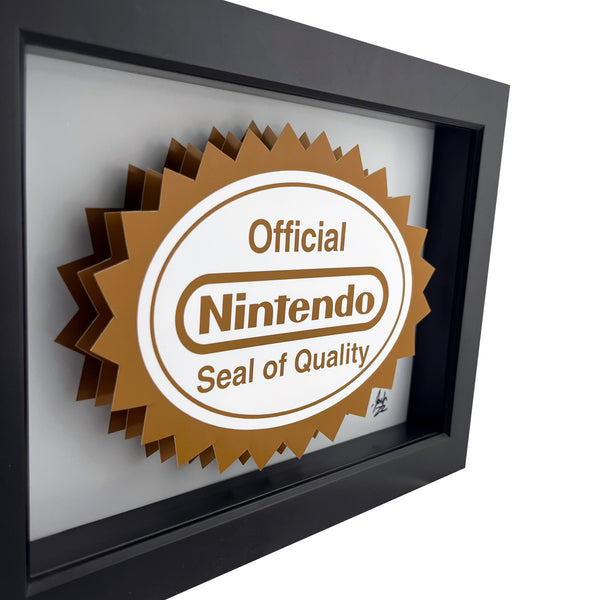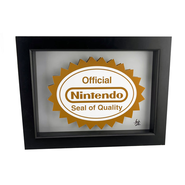 This retro video game art is inspired by the Nintendo Seal of Quality from the original run of NES games.
